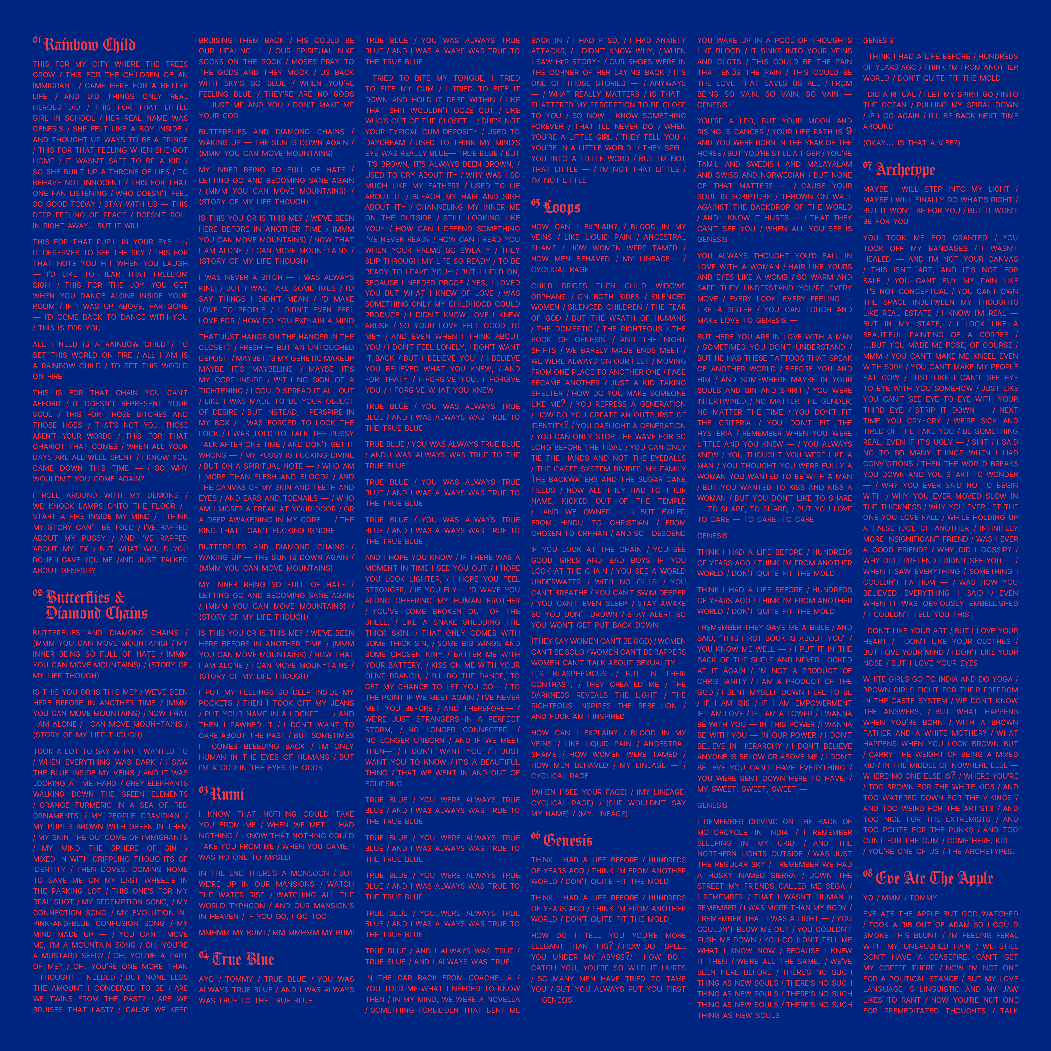 Art Direction, Vinyl Packaging, “True Blue” Title Card, “Genesis” Logo type, “True Blue” Movie Poster, Social Assets, Ads, Apple Motion & Artist Motion, Spotify Canvases, Visualizers.